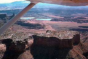 Dead Horse Point State Park's 5200 acres is managed by the Utah Division of Parks & Recreation, a division of the Utah Departmentof Natural Resources. The park is open year round and camping is limited to two consecutive weeks per month. All water is trucked in from Moab. Altitude is about 6000 feet. Summer high temperatures are 90-100 degrees, with nighttime temperatures in the 40s. Animals and vegetation have adapted to extremely arid high chaparral environment. Even the plants are nocturnal. Reservations are not required but are recommended. Unreserved campsites are on a first come first served basis. There is a user fee. To make reservations, call 800-322-3770 Monday-Friday 8:00-5:00. |