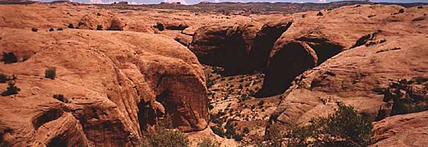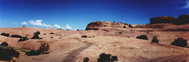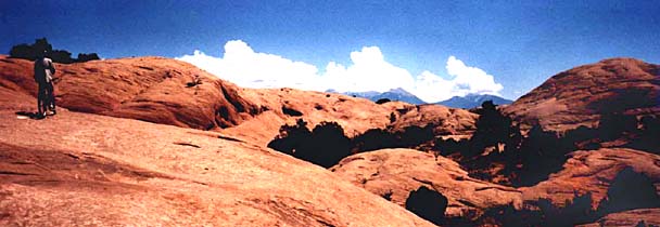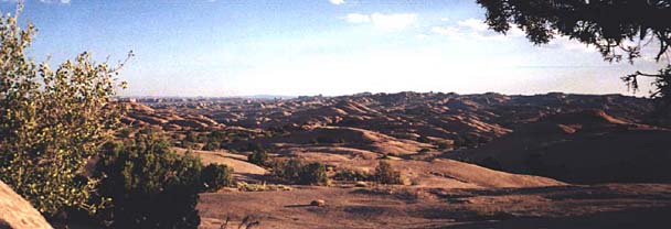 Early morning at the trailhead, looking out over miles of sandstone bumps.